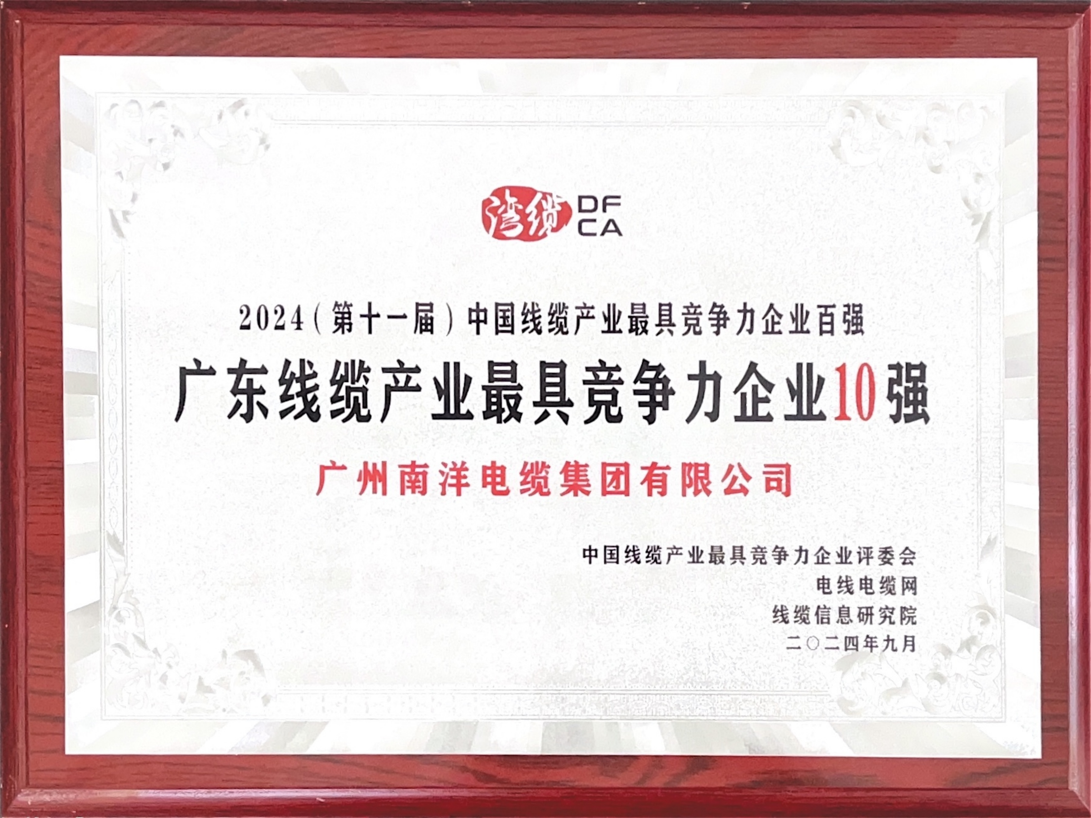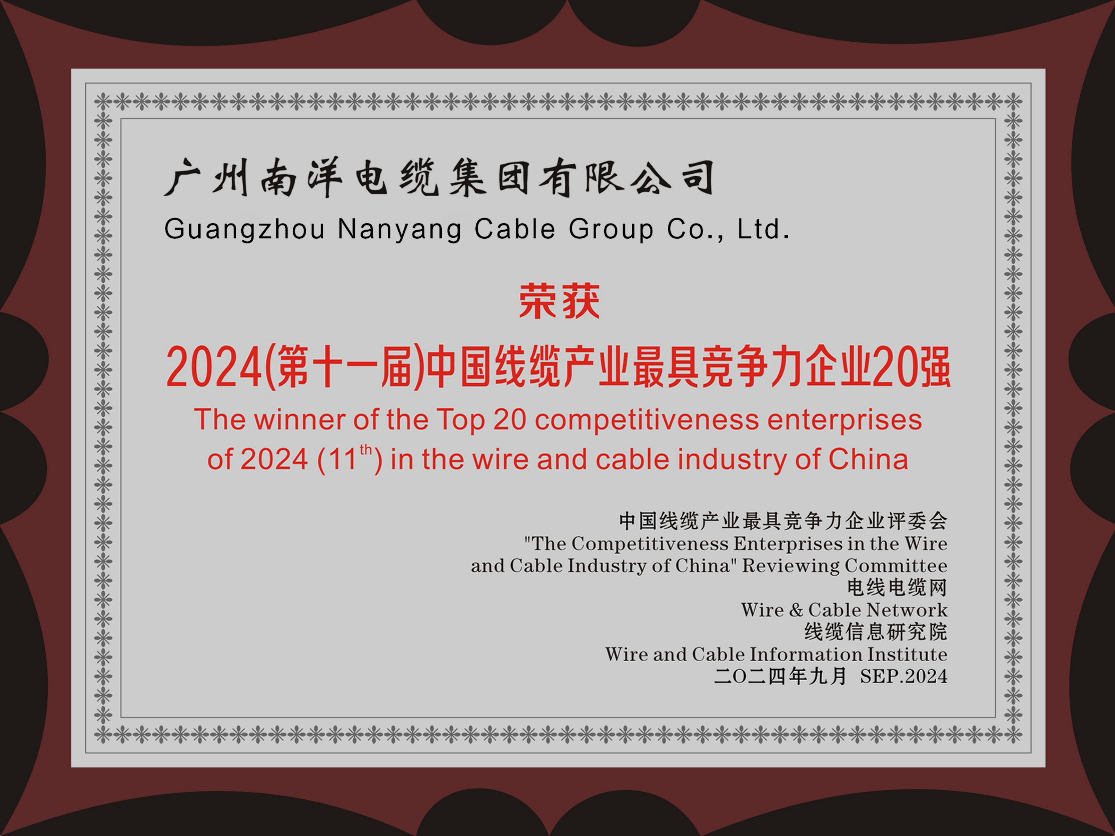 廣東線纜行業(yè)最具競爭力企業(yè)第一名、中國線纜行業(yè)最具競爭力企業(yè)20強(qiáng)、華南地區(qū)電線電纜研發(fā)制造龍頭企業(yè)